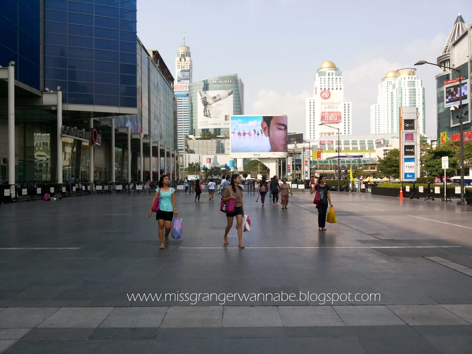Dari depan hostel, kita jalan menuju Platinum dan Pratunam Market. Sebenarnya jaraknya lumayan jauh, tapi dikarenakan demo yang sedang berlangsung, otomatis jalanan menjadi ramai dengan jualan di sepanjang jalan. Tanpa terasa kita berjalan cukup jauh dan sampai juga di Platinum.