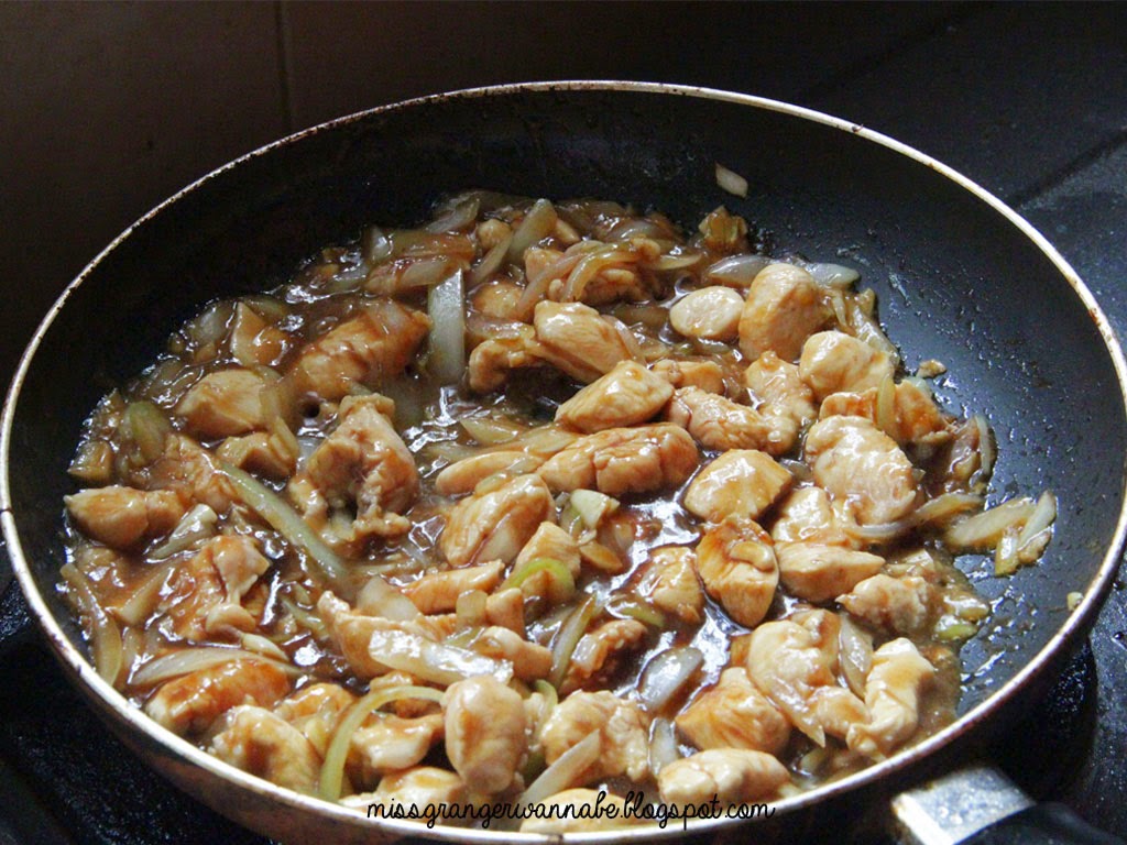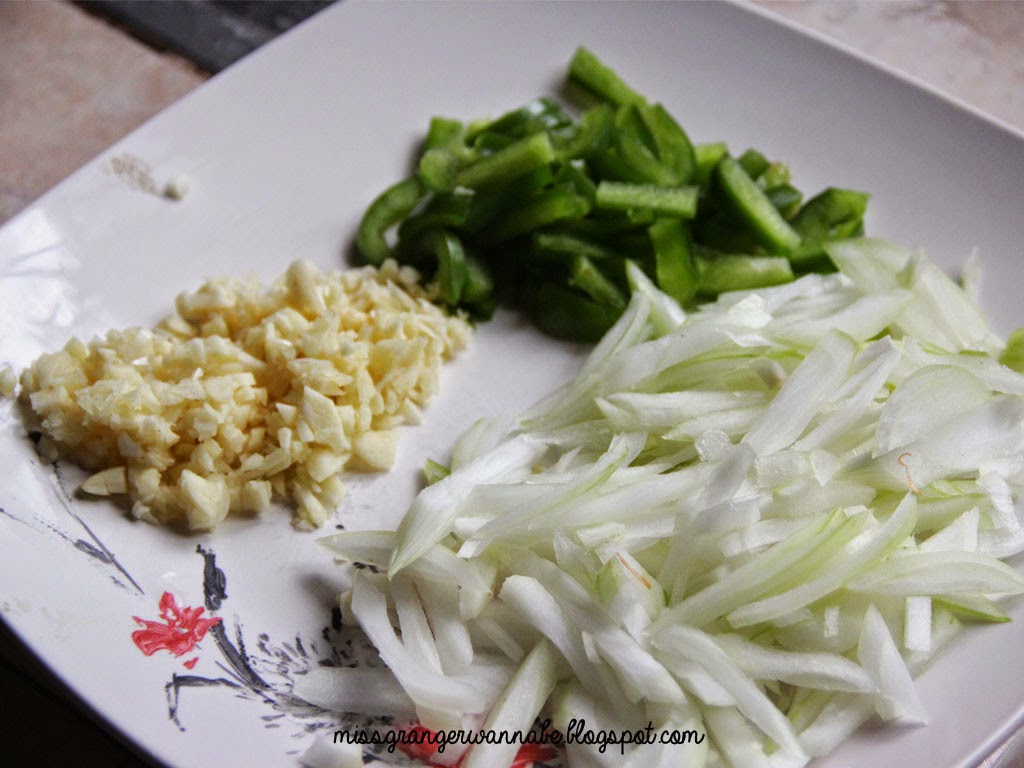 Saatnya memasak daging. Sama seperti memasak sayuran, tumis dulu bawang putih sampai wangi. Selanjutnya masukan paprika dan dagingnya. Tambah saus teriyaki dan soy sauce dilanjutkan dengan lada. Masukkan sedikit air, biarkan sebentar sampai sedikit meresap.
