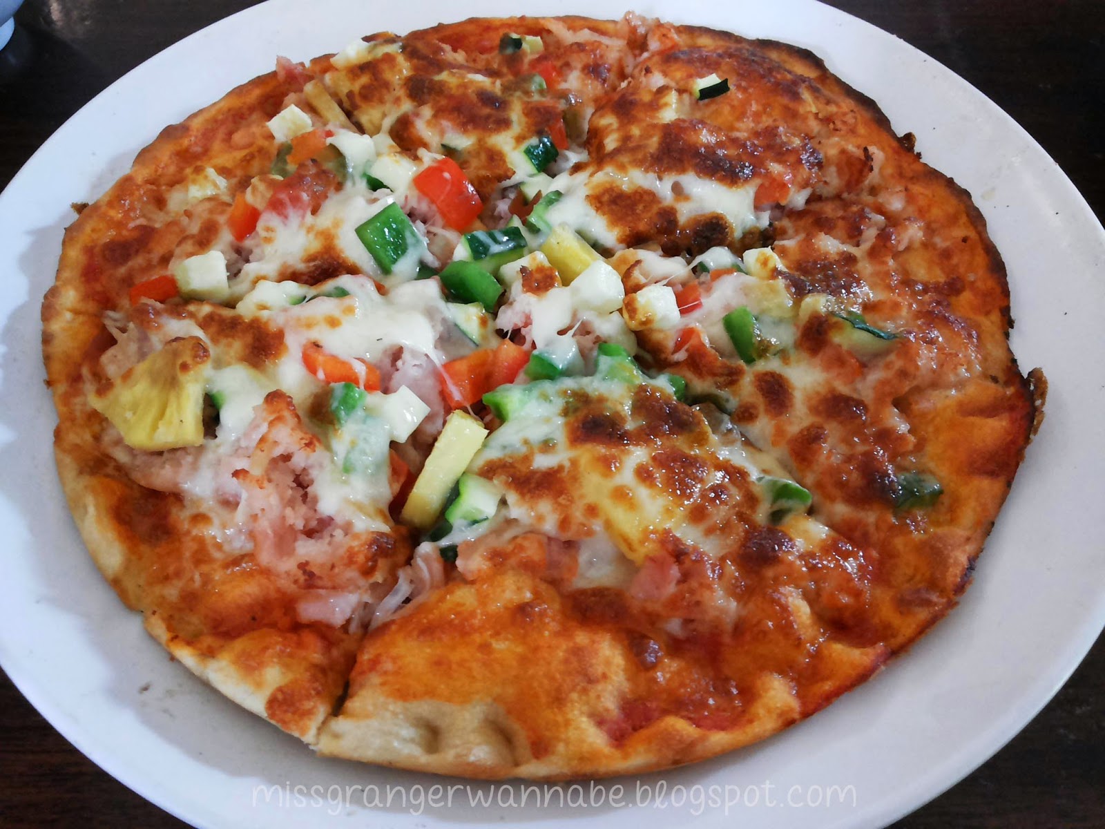 Pas nyobain, ternyata semua isu bahwa Pizza ini enak banget itu BENAAAR! Pizzanya gak tebel dan ada rasa kres-kresnya! Hahahaha… Pokoknya gak kayak makan karet deh. Favorit di antara kedua Pizza ini pastinya Hawaiian Pizza! Oh iya, Pizza ini ada sekitar 6 slice dengan harga 1 pan nya Rp 60.000,-