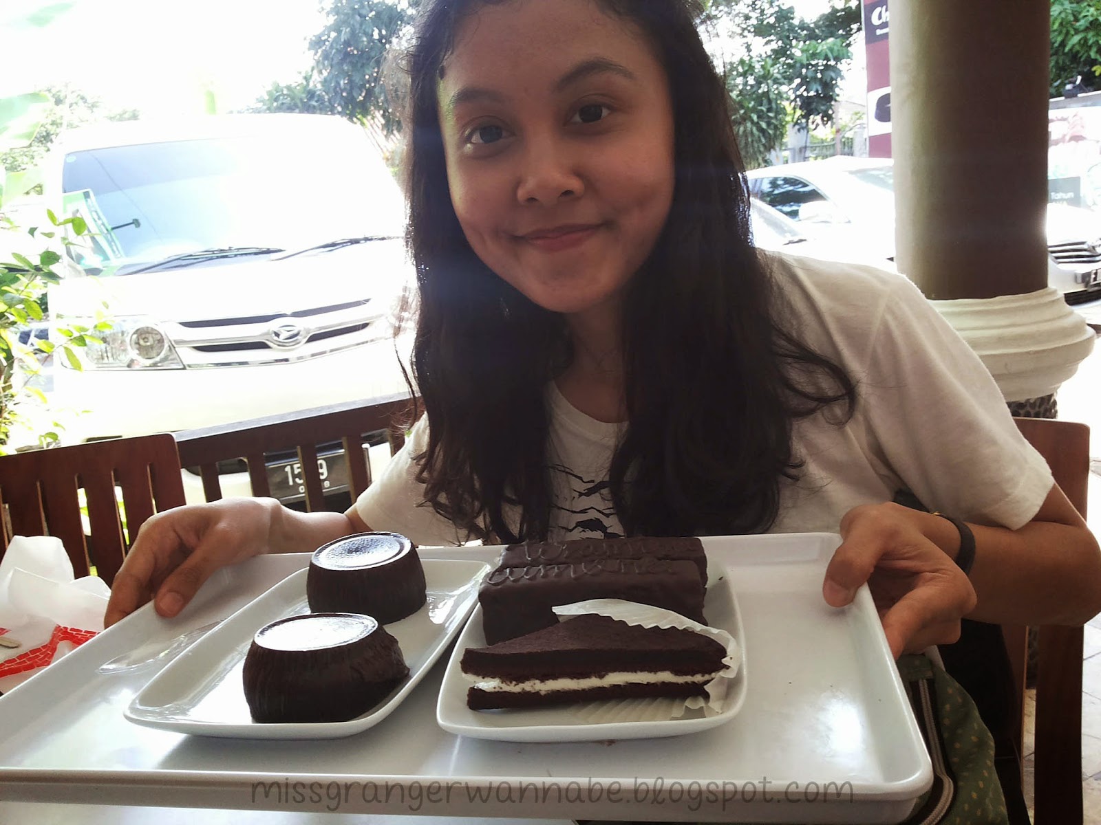 Di kali pertama saya ke Chocolava Alania, kepengen nyobain Choco Sandwich Cakenya (Rp 5.000,-). Sedangkan yang lain pesan Choco Bar berbagai rasa (Rp 10.000,-) dan Chocolava Original Classic (Rp 10.000,-). Dan apa yang paling disuka dari ketiga menu ini? Tadaaaa! Chocolava Original Classic juaranya! Makanan ini seperti chocolava lainnya yang isinya ada lumeran chocolate. Tapi sayangnya kita gak bisa bawa pulang karena daya tahannya cuma skitar 2-3 jam-an di luar ruangan. Sedangkan hari itu kita lagi nyoba naik kendaraan umum.