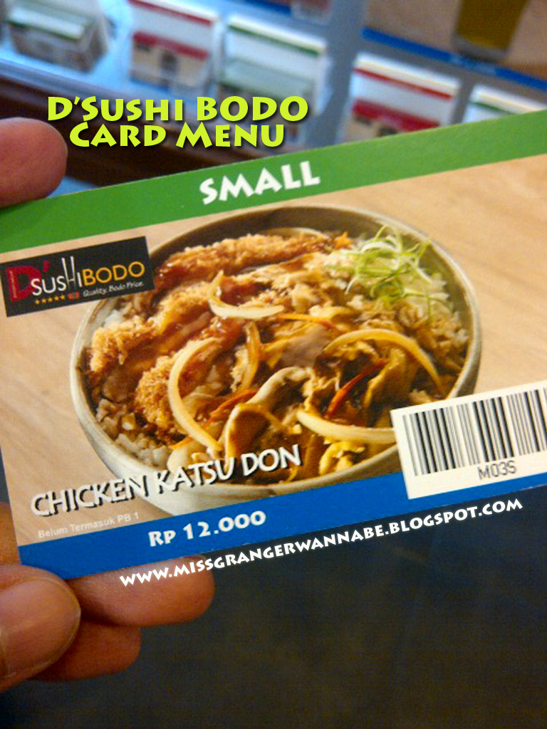 The name is, D’Sushi Bodo. It is very unique, because “Bodo” means “Stupid”. I don’t know why the owner named the restaurant like that. The Restaurant is very spacious. It has approximately 50 – 100 chairs. When you enter the restaurant, you may find a big board with a lot of menu. The menu is written on a card. It has the picture of the Food and Beverage with their prices.