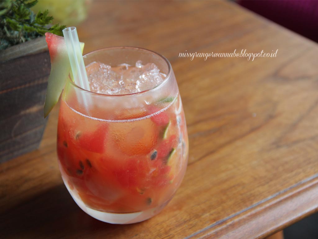Surprise! Ternyata minuman ini adalah campuran sari semangka dan juga jeruk nipis (lime). Saya sendiri tidak terlalu nikmat mencobanya. Karena kebetulan hari itu tenggorokan sedang sakit. Jadi soal rasa saya tidak bisa komen. Tapi yang pasti menu ini sangat segar diminum di siang hari. Cuma satu kekurangannya, banyak biji semangka yang ikut terminum.