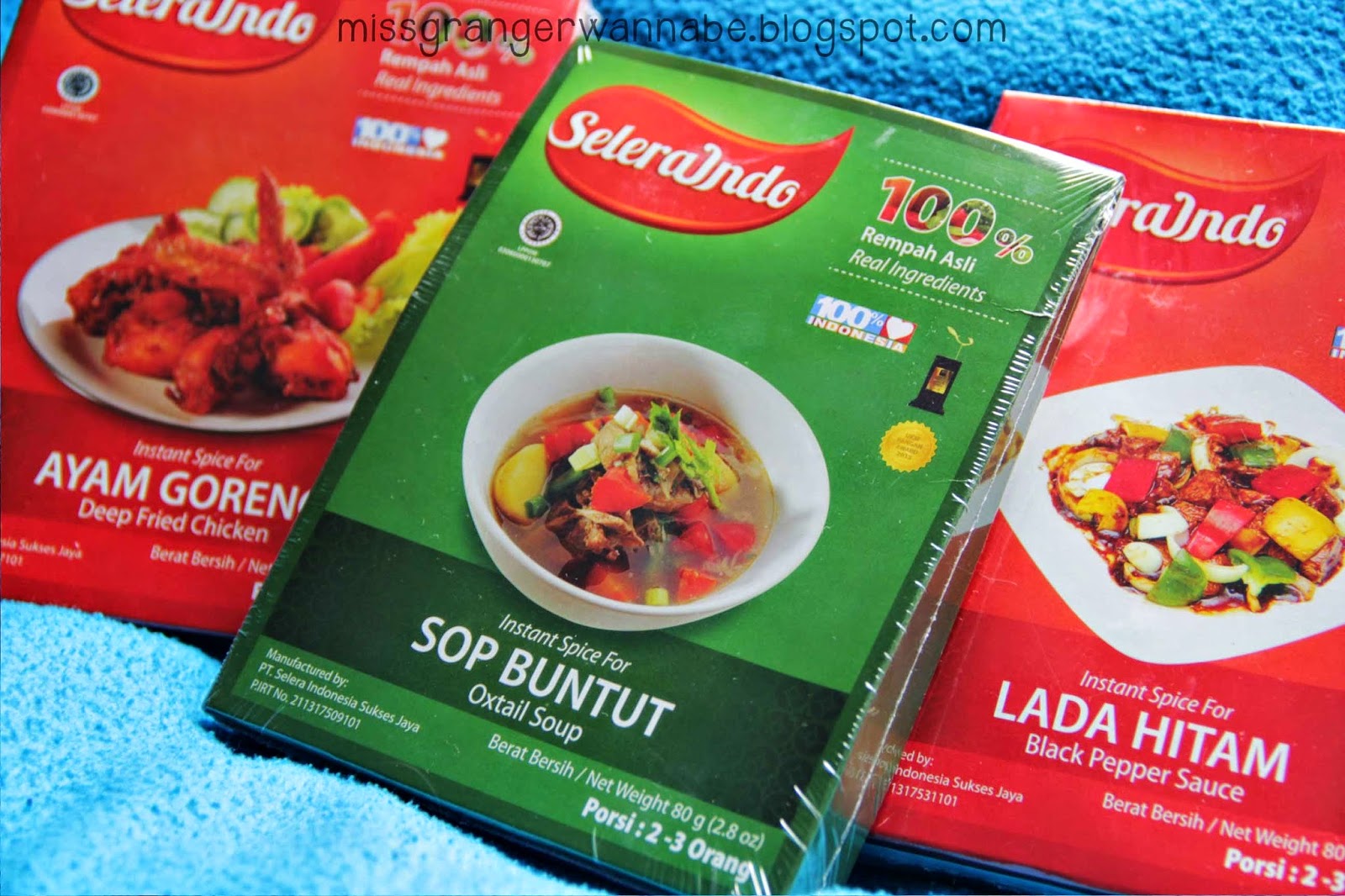 Berhubung saya belum bisa masak, jadilah saya beli bumbu-bumbu instan. Produk-produk yang di bawah ini menawarkan bumbu masakan ala rumahan yang gampang untuk pemula. Awalnya saya cuma mau beli Black Pepper saja untuk bumbu daging. Eh sang SPG bilang, kalo beli 3 nanti bonus 1 produk bumbu Nasi Goreng. Yah, tergoda deh, jadi beli 3 hahahaha.