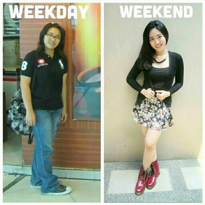 Hihihihi. Beda banget weekday dan weekendnya. Kalo saya weekday kucel weekend lebih kucel lagi. 😀