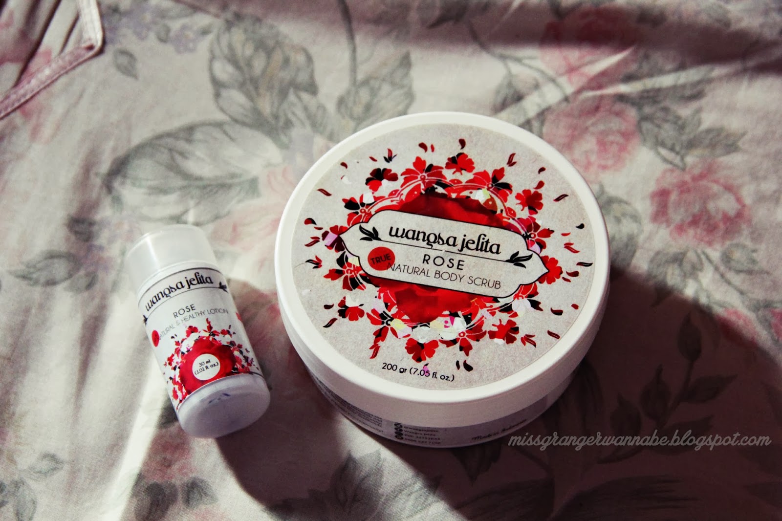 Wangsa Jelita Rose Natural & Healthy Lotion after rinse the scrub with warm water and dry it with towel.